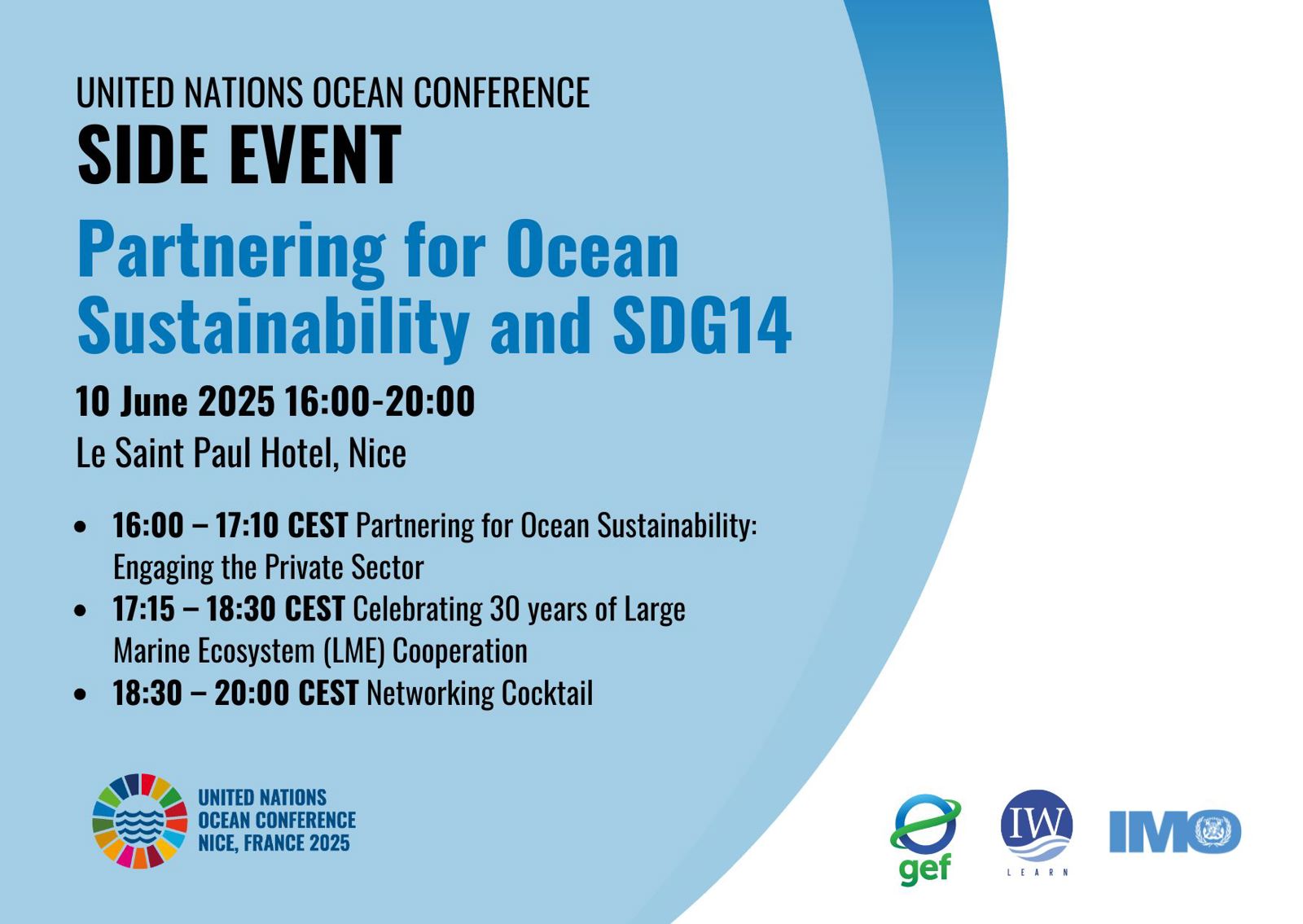 - 17:15 - 18:30 CEST, Celebrating 30 years of Large Marine Ecosystem (LME) Cooperation:
